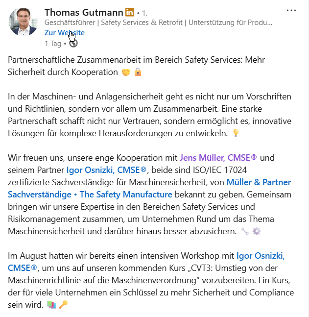 Announcement 😊: SCIO Automation 🫶 Müller & Partner Sachverständige • The Safety Manufacture